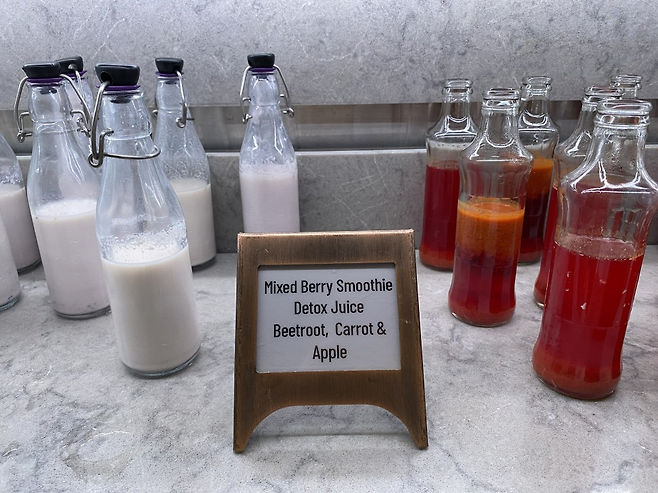 호텔 안내 책자와 룸서비스 메뉴판도 없다. TV에 나오는 QR코드를 이용해 호텔 정보와 메뉴 확인 및 음식 주문이 가능하다. 작은 욕실용품을 기념품처럼 챙기는 사람은 조금 아쉽겠다. 플라스틱을 줄이기 위해 욕실용품도 전부 대용량으로 바꿨다. 욕실용품은 영국 브랜드 ’크랩트리 앤 에블린(Crabtree&Evelyn)을 쓴다.