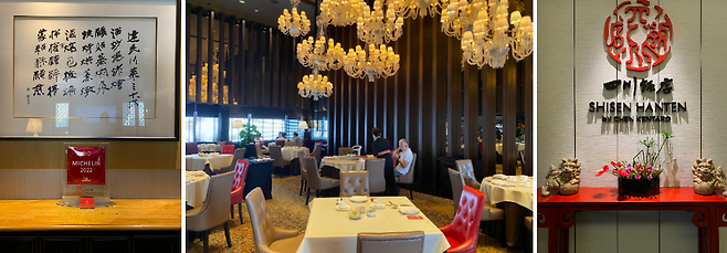 시센 한텐은 힐튼 싱가포르 오차드 유일 미쉐린 별을 받은 레스토랑이다. 2018년부터 5년 연속 미쉐린 별을 받은 시센 한텐은 중국 사천요리를 내는 중식당이다. 시센 한텐의 대표 메뉴는 ‘첸의 마파두부’다. 총괄 셰프 첸 켄타로의 이름을 요리명에 넣었을 정도로 자신감이 대단하다. 3년간 발효한 소스를 넣어 두부의 식감이 부드럽다. 생각한 것보다 짜지 않고 사천요리 특유의 화한 마라 맛이 느껴져 이국적인 풍미를 자랑한다.