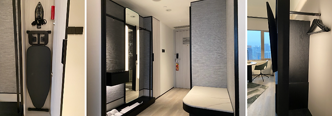 단순히 공간 활용만 영리하게 한 것이 아니다. 오차드로드에서 쇼핑하는 기분을 호텔 객실에서도 느끼라고 일부러 개방형 옷장을 설치한 것이다. 옷가게에 걸린 옷을 골라 입는 기분을 낼 수 있도록 말이다.
