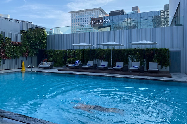 야외수영장은 5층 로비 옆에 있다. 풀 규모는 그리 크지 않다. 동남아 호텔을 선택할 때 야외수영장이 가장 중요하다면 신중하게 고민해봐야겠다.