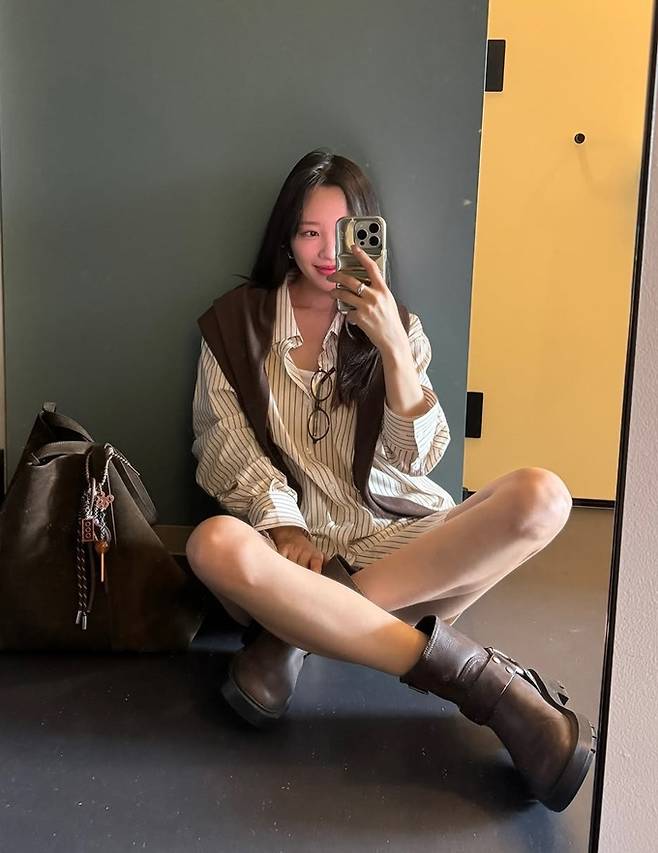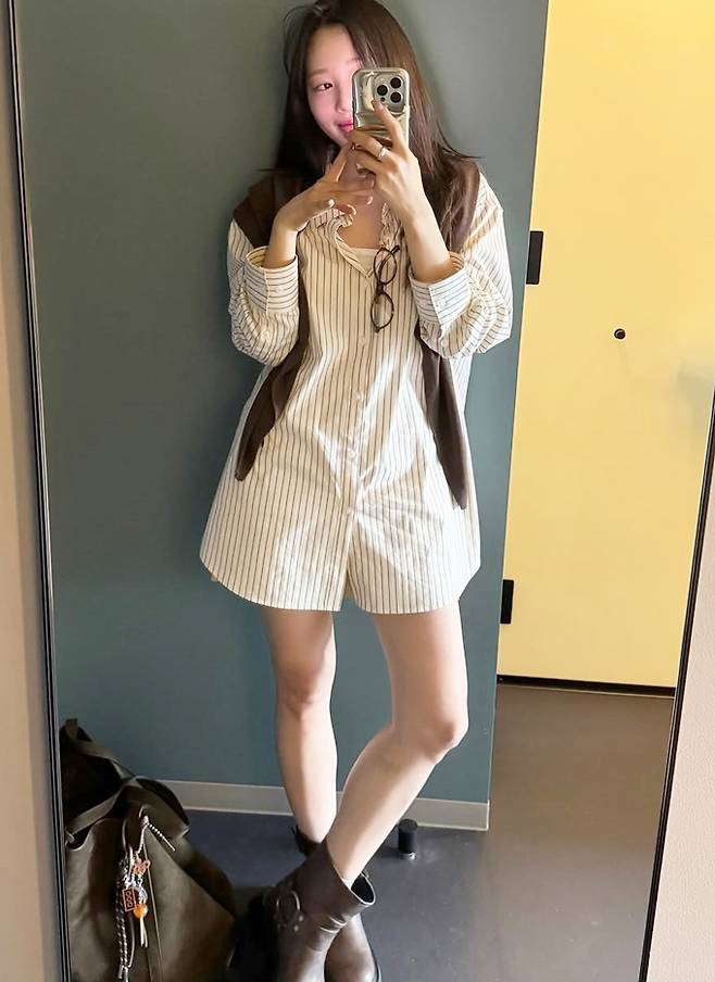 공개한 사진에서 이솔이는 늘씬한 각선미가 드러난 오버핏 스트라이프 셔츠의 하의실종룩으로 발랄하면서도 섹시한 여행 스타일을 드러냈다.