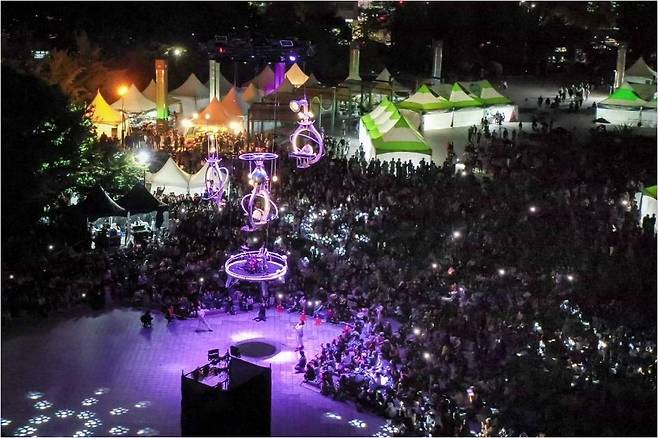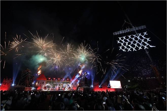 어느새 어둠이 내려앉으면, 축제의 밤은 다시 한 번 깨어납니다. 야간 특별 공연 ‘불꽃 드론 라이트 쇼’는 그야말로 황홀한 장면입니다.