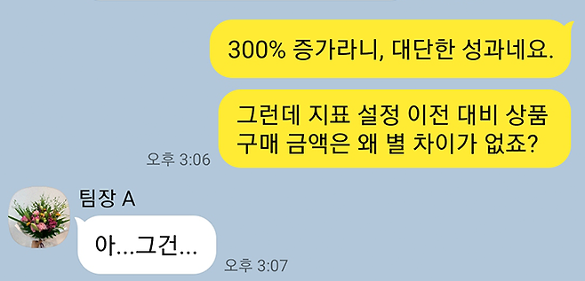 지표 설정 후 분명 대화가 300% 증가했는데 구매 금액은 왜 그대로였을까? 지표설정에 문제가 있었던 것일까?