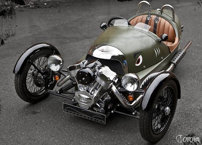 2011년에 처음 등장한 이 삼륜차는 마치 반세기 전으로 돌아간 것만 같은 클래식한 분위기와 더불어 독특한 스타일이 특징이다. 이 차는 1930년대에 제작했던 삼륜차의 스타일을 재현한 모델로, 앞바퀴 차축 사이 정중앙에 떡하니 버티고 있는 V트윈 엔진이 인상적이다. 이 엔진은 S&S 사이클의 2.0리터 V트윈(V형 2기통) 엔진으로, 커스텀 초퍼 바이크 등에 쓰이는 강력한 성능의 공랭식 엔진이다.