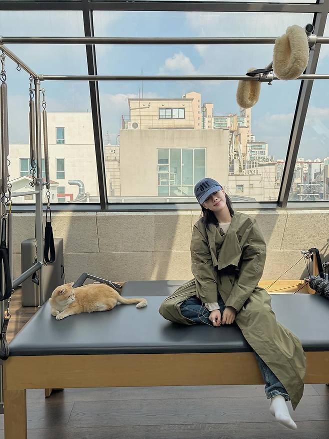 그녀는 올가을 트렌드인 루즈핏의 올리브 그린 트렌치코트를 메인으로 선택하여 무심한 듯 시크한 매력을 뽐냈습니다.