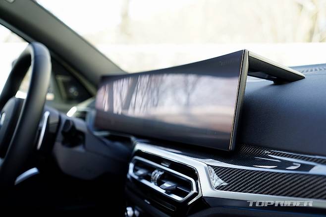 실내에서는 커브드 디스플레이가 시선을 모은다. 단순히 일체형 패널만 사용된 것이 아니라, iDrive8 적용으로 계기판, 인포테인먼트 구성, 헤드업 디스플레이까지 디자인이 달라졌다. 계기판이 스티어링 휠과 가까워 부족한 시인성은 중앙에 모인 레이아웃 선택시 해결된다.