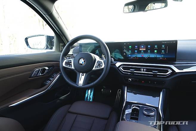 전기차 iX와 i4를 통해 먼저 선보인 iDrive8 인포테인먼트 시스템은 스마트폰처럼 아이콘이 나열된 형태로, 3시리즈 LCI에 이르러서는 기본 레이아웃을 통해 어느 정도 정돈된 느낌이다. 차량내 UI(User Interface) 편의성과 직관성이 좋았던 뛰어난 과거의 명성을 되찾았다.