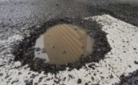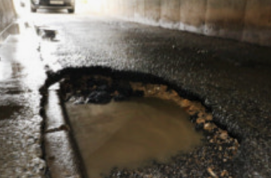 아스팔트가 파손되어 깊게 파인 구멍, 즉 '포트홀'이 물웅덩이 밑에 완벽하게 숨어있을 수 있습니다.