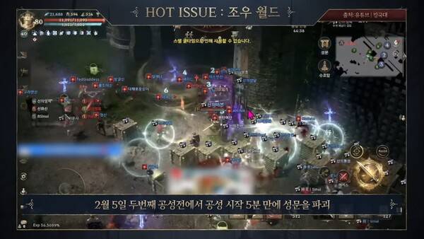 서버 주요 소식으로는 조우08 서버 공성전 데스연합2와 ARROGANT 연합 싸움을 조명했다. 이들의 전투는 지난달 29일부터 지속되고 있다. 3차례 공성전에서 모든 수호탑이 파괴되고 누적 6640회 이상 킬이 발생할 정도로 치열한 전투를 펼쳤다.