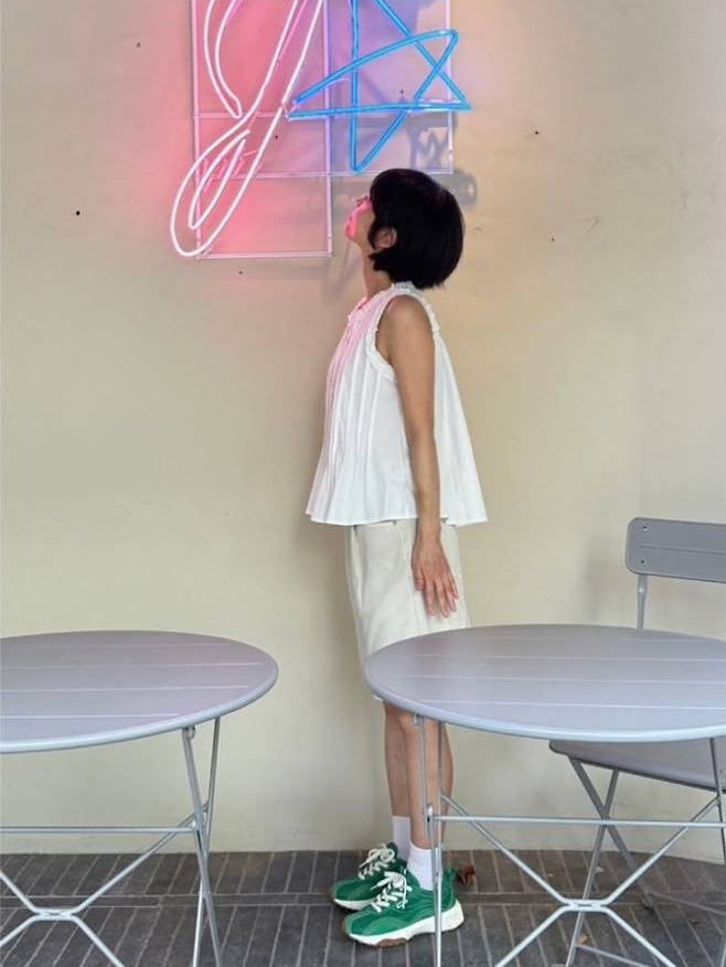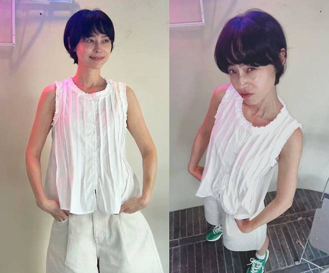 배우 우희진이 청량감 가득한 화이트 캐주얼룩으로 여름 분위기를 물씬 풍겼습니다.
