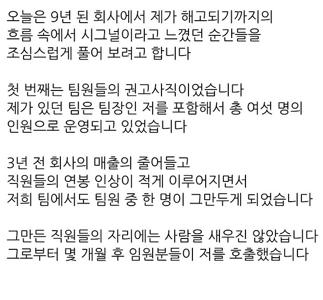해고 시그널임을 잘리고서 깨달은 40대