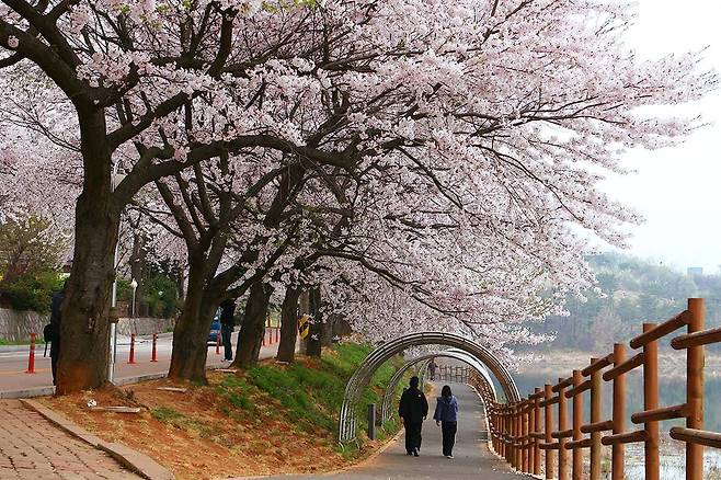 호수를 중심으로 인근의 작은 산들이 어우러져 있으며, 순환도로가 완공되어 자동차로도 주변을 둘러볼 수 있습니다. 특히 봄철에는 화사한 벚꽃길이 펼쳐져 친구, 가족, 연인들의 사랑을 받고 있습니다.