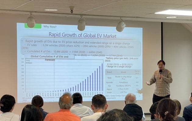 에너캠프와 와이파워원이 그 주인공입니다. 지난 7일 미국 산호세 코트라실리콘밸리에서 개최된 '연구개발특구 글로벌 K스타트업 피치 앤드 데모'에서 이 두 회사는 자신의 사업모델에 대한 청사진을 그려보였습니다. 이날 피치에 나선 소재, 바이오, 인공지능(AI) 등 다양한 분야의 10개 회사 가운데 전기차 충전업체가 2개로 비중이 높았습니다.