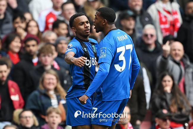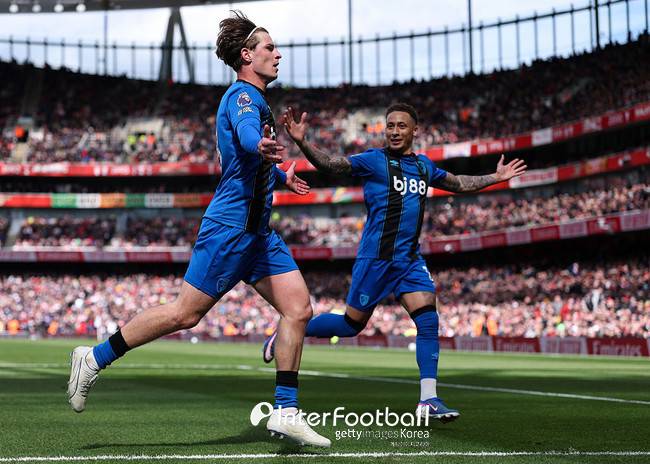 본머스는 전반 40분 에바니우손이 슈팅 기회를 잡았는데 라야 선방에 막혀 아쉬움을 삼켰다. 전반 추가시간은 2분이었다. 전반은 1-1로 종료됐다.