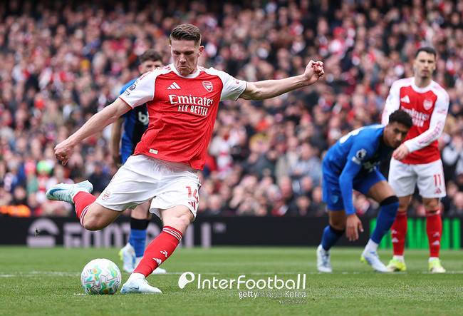 아스널이 동점골 기회를 잡았다. 전반 34분 크리스티 핸드볼 파울이 나오면서 요케레스가 페널티킥 키커로 나서 골을 기록했다.