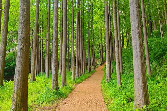 국내에서 가장 큰 규모인 만큼 메타세콰이아의 놀라운 비경을 누릴 수 있을 것입니다. 마련된 쉼터에 앉아 주변 경관을 둘러보며 자연의 신비와 맑은 공기를 즐겨보세요.