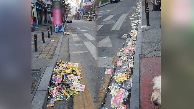 “여기 100m 정도 구간만 전단지 쓰레기가 100L 종량제 5-6개가 나와요. 매일 나옵니다.”