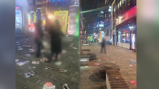 마침 길을 지나던 한 시민도 전단지를 밟고 헛발질을 하며 겨우 중심을 잡습니다. “술 마시고 걷다 보면 확실히 미끄럽다”며 불쾌감을 드러냈습니다.