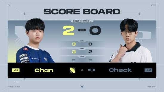 첫 번째 경기는 그룹 A M1 DRX 'Chan' 박찬화와 디플러스 기아 'Check' 김준수의 대결.