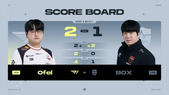 세 번째 경기는 그룹 B M1 T1 'Ofel' 강준호 선수와 농심 레드포스 'BOX' 강성훈 선수의 대결.
