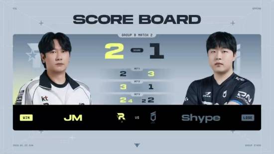 네 번째 경기는 그룹 B M2 kt 롤스터 'JM' 김정민과 DN수퍼스 'shype' 김승환의 대결.