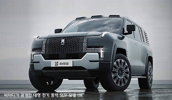 중국의 자동차 메이커 비야디(BYD, 比亚迪)가 얼마전 대형 전기 동력 럭셔리 SUV를 공개했다. 보도된 내용을 종합해 보면 비야디의 자체 프리미엄 브랜드 양왕(仰望)의 플래그 십 SUV로 나온 차량 이름은 U8 이라고 하며, 가격은 80만 위안~150만 위안(약 1억 5천만원~2억 7천만원) 이라고 한다.