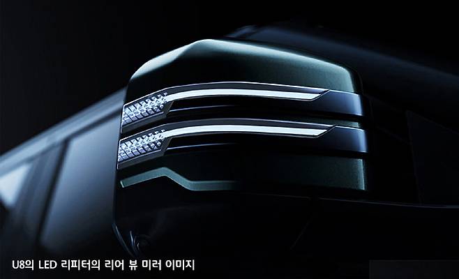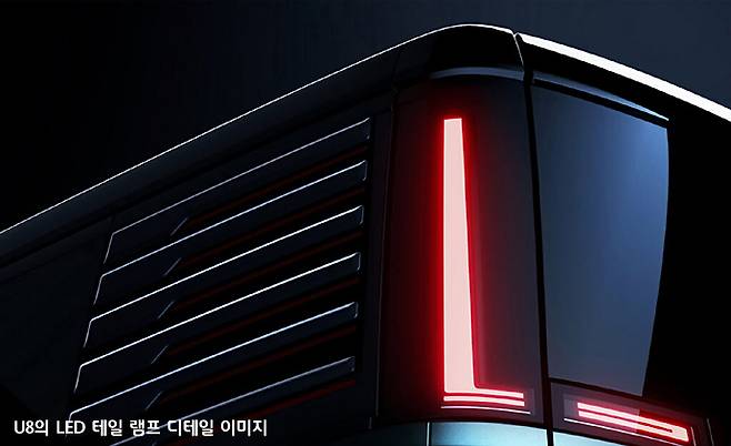 제네시스 브랜드의 플래그 십 SUV 모델 G80의 제원이 전장, 전폭, 전고가 4,945ⅹ1,975ⅹ1,715(mm)에 휠베이스 2,965mm인 것과 비교하면 U8 모델은 길이는 400mm 가량 더 길고 높이도 100mm 정도 더 높아서 정말로 크게 만들었다.