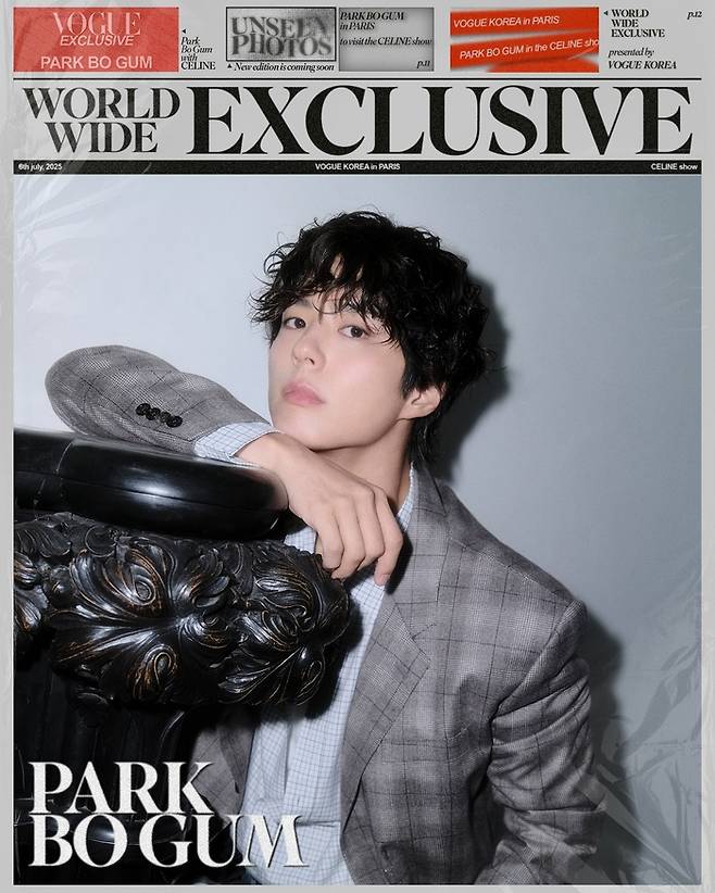 박보검은 14일 자신의 SNS를 통해 보그 코리아와 함께한 화보와 비하인드 컷을 공개했다.