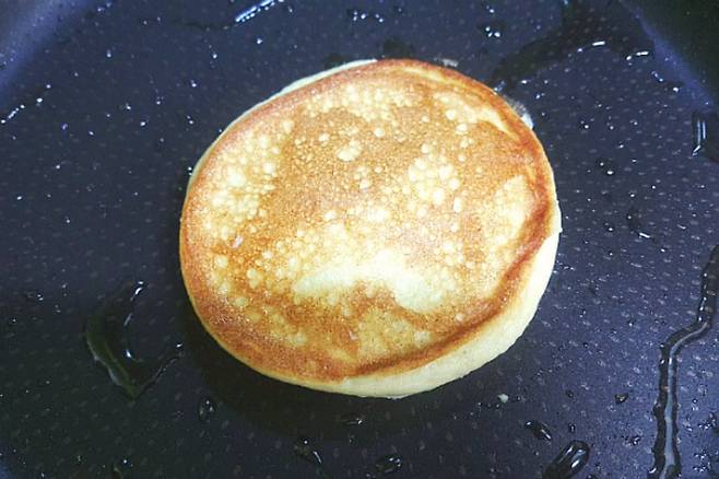 기포가 생기면 살살 뒤집어 주시면 됩니다. 약불에서 타지 않게 천천히 구워 주세요.