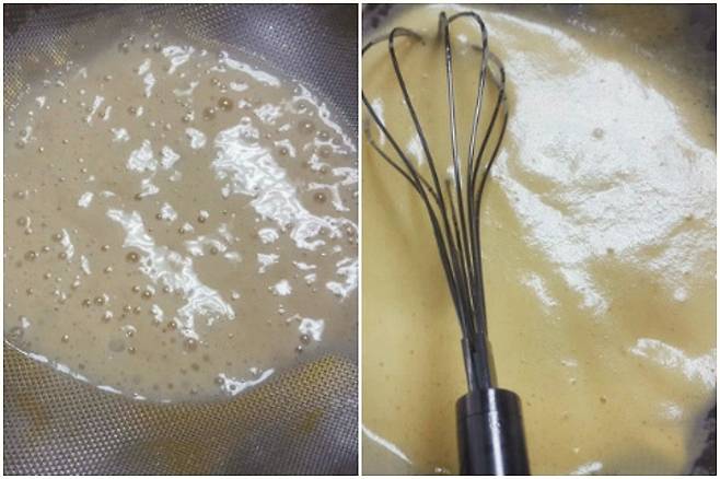 바나나는 믹서기에 갈아서 체에 밭쳐 곱게 걸러낸 뒤 섞어 줍니다.