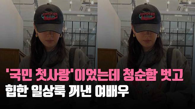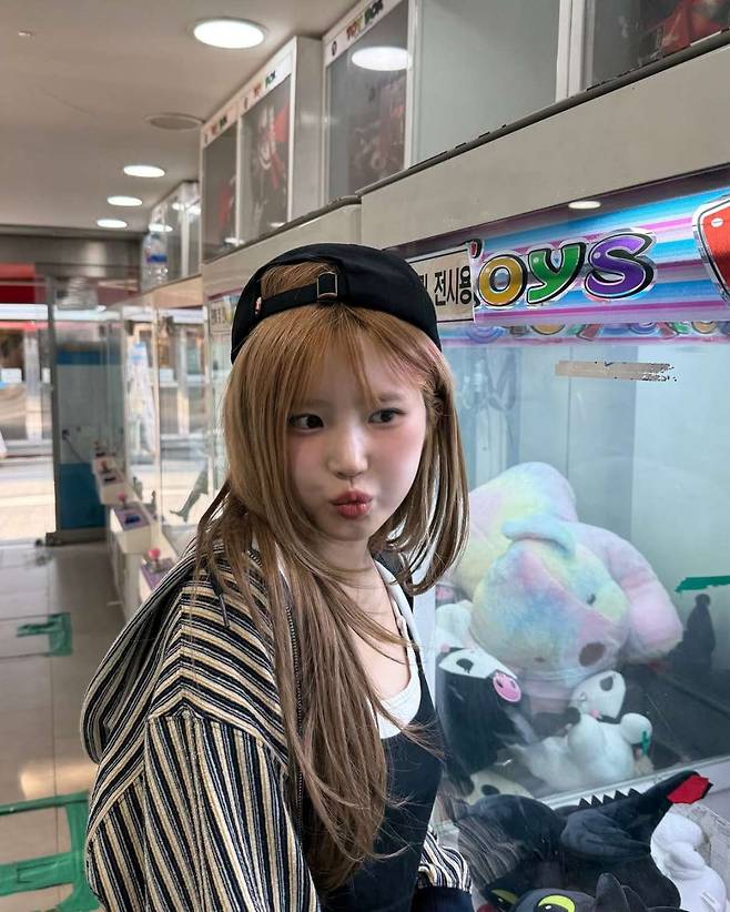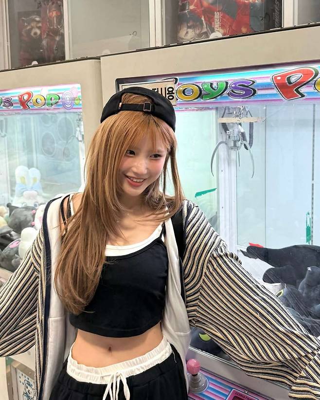 이어진 두 번째 사진에서는 완전히 다른 느낌의 스포티 캐주얼룩이 눈에 띄었다. 블랙 크롭탑과 화이트 이너를 레이어드한 후, 스트라이프 패턴의 집업을 자연스럽게 걸쳤다. 여기에 허리 스트링이 포인트인 블랙 조거 팬츠를 더해 활동적인 이미지를 부각시켰다. 볼캡을 뒤집어 쓴 스타일링 역시 자연스럽고 자유로운 매력을 더했다. 팔을 양옆으로 벌린 포즈와 밝은 미소가 어우러져 에너지 넘치는 분위기를 완성했다.