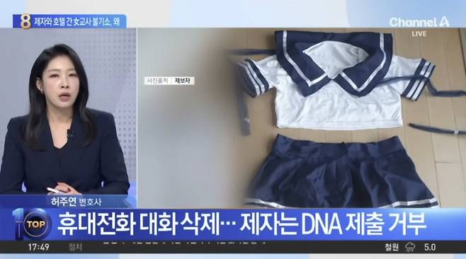 예고 여교사 박 모 씨가 어린 자녀를 데리고 남학생과 함께 호텔에 3박 4일간 투숙했으며, 호텔 로비와 식당 등에서 포옹, 입맞춤 등 애정 행각을 벌이는 CCTV 영상과 다수의 호텔 예약 내역이 존재한다고 주장했습니다.