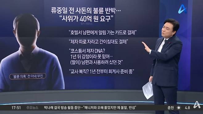 A 씨는 "이혼소송 위자료 6천만 원은 판결 다음 날 모두 지급했는데, 그와 별도로 40억 원을 요구했다"며 "(손자에 대한) 친권 포기도 요구해 협의가 되지 않았다"고 말했습니다. 최근까지도 "언론 제보와 국민청원을 언급하며 금전을 요구받았다"고 주장했습니다.