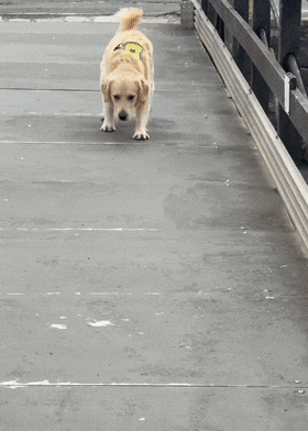 다리를 무서워하는 골든 리트리버도 있습니다. 다리를 건널 때는 마치 발가락으로 땅을 움켜쥐듯 힘겹게 걸음을 옮깁니다. 혹시라도 다리가 무너질까 봐 걱정하는 듯한 모습입니다.