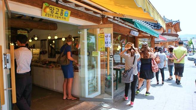 전주비빔밥은 물론, 초코파이, 육전, 문강정, 인절미 아이스크림 등 지역 특색 있는 간식들이 다양하게 판매되어 먹거리 투어만으로도 반나절은 충분히 즐길 수 있다.