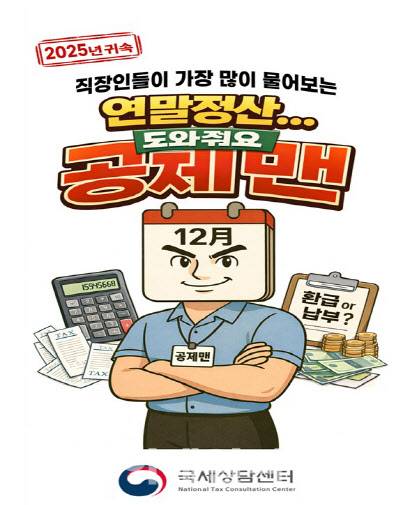 국세청이 선보인 ‘연말정산 도와줘요 공제맨’ 콘텐츠는 4컷 만화, 유튜브 숏츠영상으로 제공되고 있다. ‘공제맨’을 통해 근로자가 헷갈릴 수 있는 대표적인 연말정산 고민 사례 12개를 뽑아 제작했다.