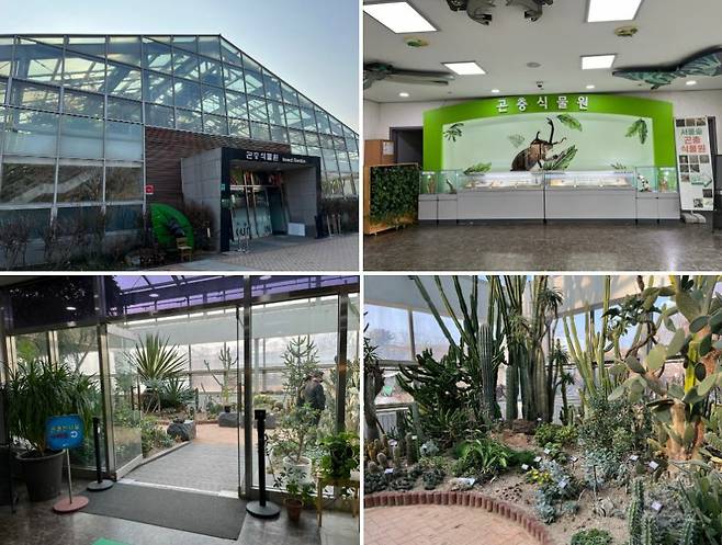 온실의 규모는 작으나 잠시 추위를 피하기엔 제격이다. 곤충식물원이라는 이름에 걸맞게 문을 열고 들어가자마자 곤충 전시물이 보인다. 본격적인 온실은 우측에서 시작한다. 선인장을 비롯한 다육식물들이 입장을 반기는 이곳에는 다양한 열대식물이 서식하고 있다. 내부를 구경하다보면 어느새 온 몸에 따스함이 감돈다.