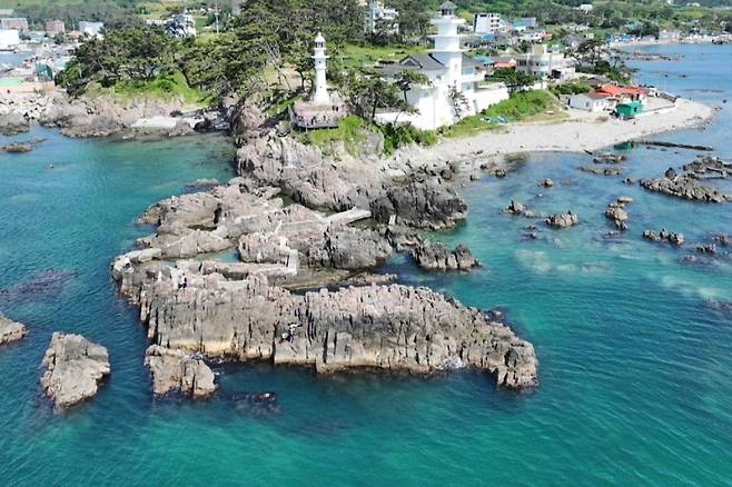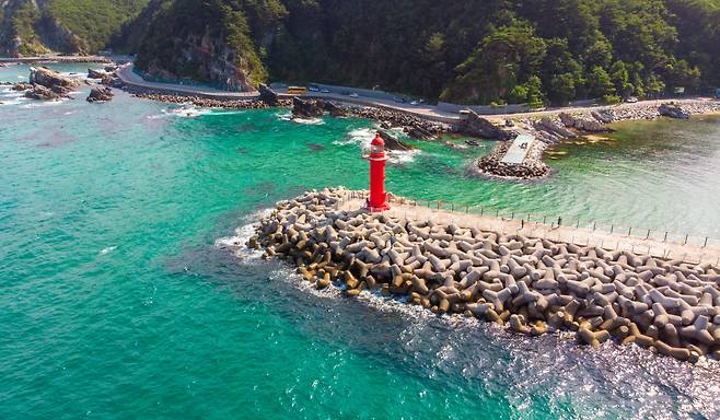 백색의 무인등대 아래 해식애에서 다양한 해양생물과 마주해 보세요! 신선하고 귀여운 친구들이 에메랄드빛 동해바다를 떠돌아다니고 있을지도 모릅니다.