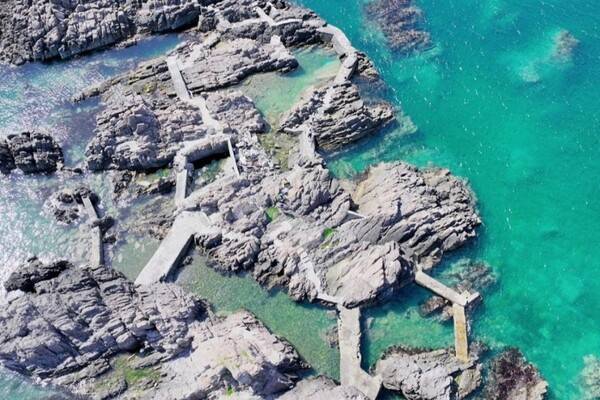 백색의 무인등대 아래 해식애에서 다양한 해양생물과 마주해 보세요! 신선하고 귀여운 친구들이 에메랄드빛 동해바다를 떠돌아다니고 있을지도 모릅니다.