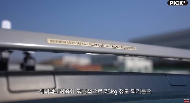 루프랙 기준 상 최대적재하중은 약 75kg 정도까지 였으며, 아무것도 적재하지 않을 경우에도 루프캐리어 자체 무게가 15kg 정도 감안하게 되면 허용 가능한 무게는 약 60kg 정도였습니다. 비록 캐리어에 아무것도 적재하지 않은 상태라도 높아진 전고 때문에 시속 약 60km/h 급커브 주행 시 자체가 상당히 불안한 모습을 보였습니다.