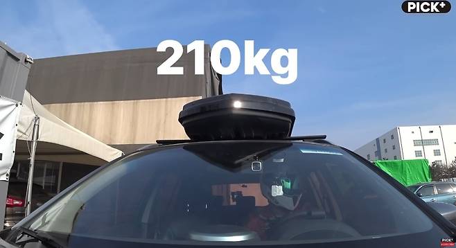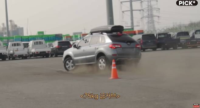 실험에 앞서 해당 위험성을 테스트하기 위해 차량을 준비하였습니다. 보편적으로 사용하는 루프랙과 캐리어를 장착한 준중형 SUV가 실험에 사용되었는데요 그리고 짐의 무게를 임의적으로 늘리기 위해 무게 추를 0kg에서 최대 210kg까지 점차 늘려가며 적재하고 일정 구간 직선 주행 및 급커브 주행을 통해 안정성 및 위험성을 확인해 보기로 하였습니다.