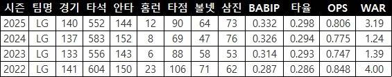 LG는 이미 잔류 의지를 공식화했다. 차명석 단장은 “옵션 미충족분 2년 25억은 기본”이라며 사실상 최저선을 제시했다.