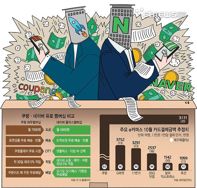 네이버가 커머스 사업에 본격 드라이브를 걸면서 쿠팡과 경쟁 구도를 재형성하고 있다. 멤버십·빠른배송 등을 강화해 쿠팡과 대등한 서비스를 제공하는 한편 강점인 인공지능(AI) 역량을 가미해 차별화하겠다는 전략이다. 네이버가 과감한 커머스 투자를 통해 e커머스 1위 쿠팡과 양강 체제를 이어갈 수 있을 지 이목이 쏠린다.