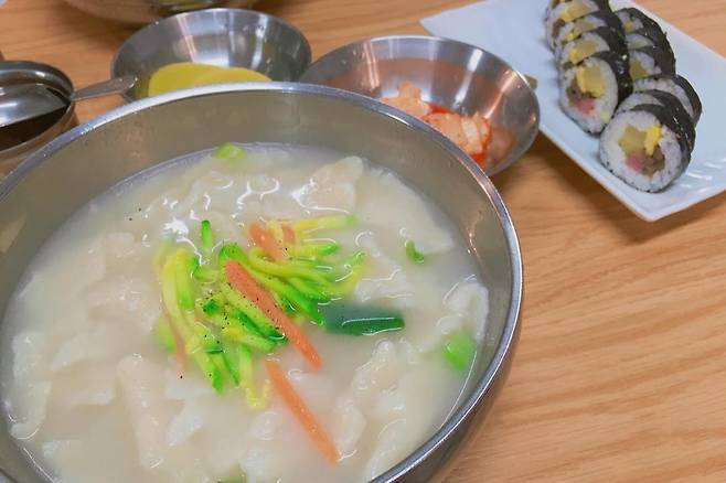 직접 만든 수제비로 쫄깃한 식감을 느끼고 푹 고아낸 사골 육수로 입맛을 다신 후 애호박과 당근으로 마무리.