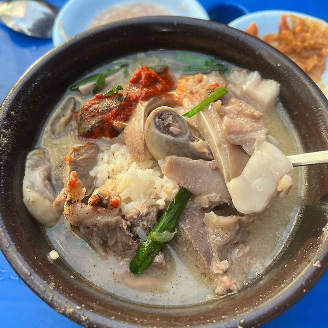 국밥에는 막창, 오소리 감투, 새끼보 등 다양한 돼지 부속을 넣어 흡사 부산의 고급 돼지국밥을 단돈 3,500원에 즐기는 것만 같습니다.