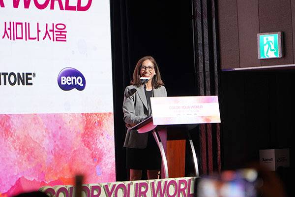 다음은 Q&A 세션이 이어졌다. 색상이 소비자의 구매 결정에 어떻게 영향을 끼치는지에 대한 질문에 팬톤 오라 솔로몬 부사장은 고객이 구매 결정에 앞서 가장 먼저 살펴보는 건 색상이며, 팬톤은 그 첫단추의 방향성을 제시할뿐만 아니라 브랜드 정체성을 기반으로 색상을 데이터화하며 전략적 방향을 모색해준다고 답하였다.