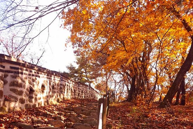남한산성의 단풍은 어디든 아름답겠지만, 가장 길이 험하다고 할 수 있는 북문→장경사→동문으로 가는 코스가 가장 웅장하고 아름답다고 생각합니다. 편하게 둘러보실 계획이라면 남문→북문→로타리로 가는 코스가 남녀노소 가릴 것 없이 갈 수 있을 정도이며, 완만한 산책길로 추천합니다.