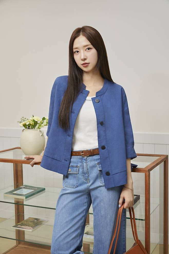 청량한 컬러가 돋보이는 가볍고 부드러운 린넨 크롭 자켓