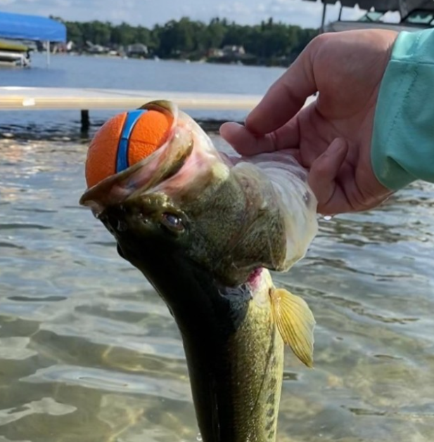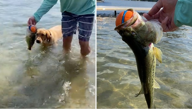 매들린 씨는 씨씨를 다독이며 물고기에게 공을 되찾기 어려울 것 같다고 설명했습니다. 하지만 그다음 순간, 믿을 수 없는 장면이 펼쳐졌는데요. 배스가 공을 삼킨 덕분에 공의 부력이 태우지 못한 녀석은 그대로 수면 위로 떠오른 것입니다!