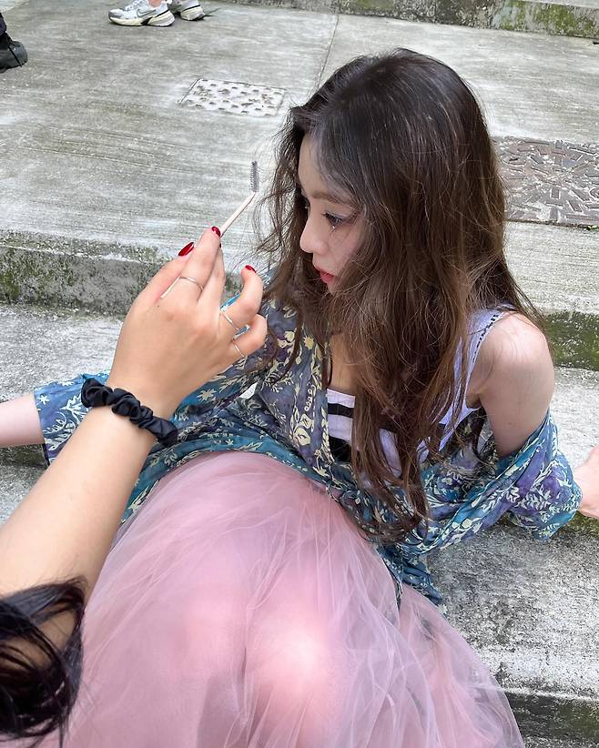 아이린이 보여준 이번 모습은 빈티지한 질감의 야외 계단을 배경으로 본인만의 신비롭고 몽환적인 매력을 극대화한 감각적인 차림이에요.